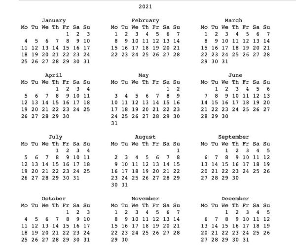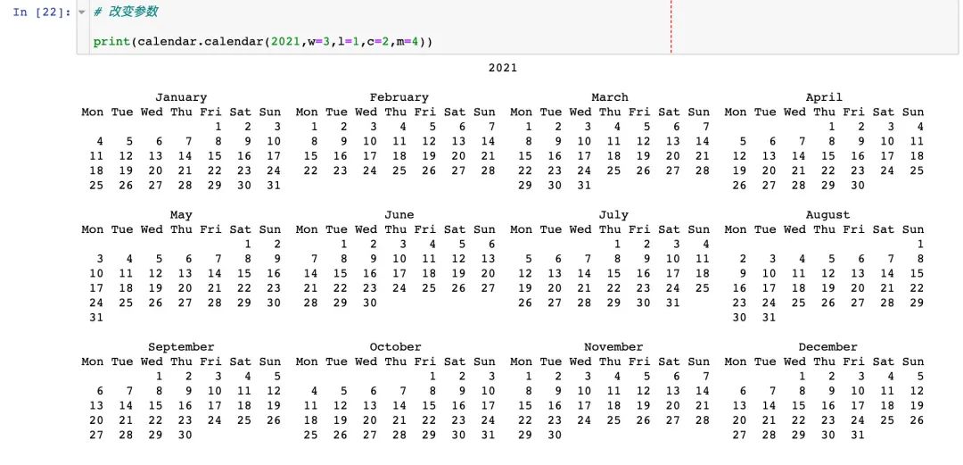 全部使用默認(rèn)參數(shù),查看某年的完整日歷: