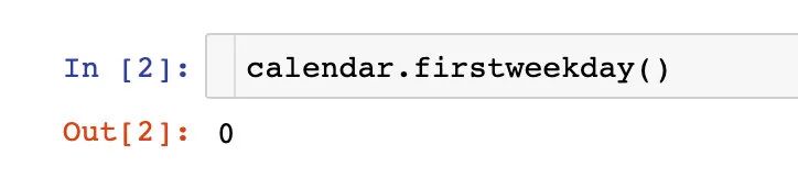 默認(rèn)情況下:0 表示星期一,6 表示星期天。我們可以通過setfirstweekday()來設(shè)置一周的第一天為星期天 (6) 或者其它任意一天