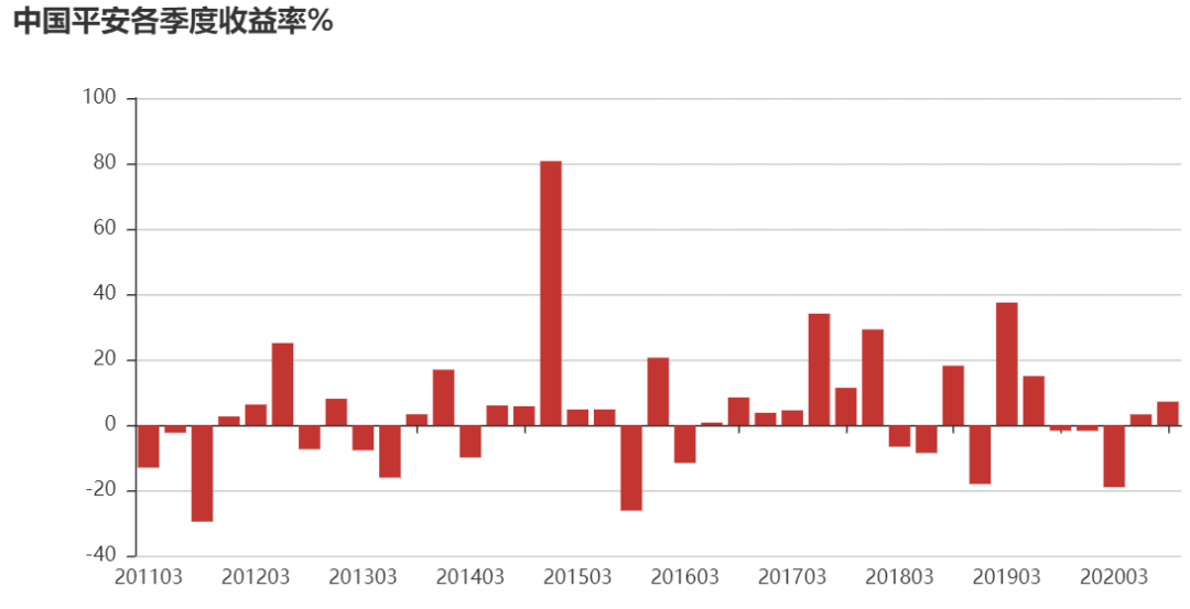 bar=Bar('中國平安各季度收益率%')bar.add('',attr,v1,)