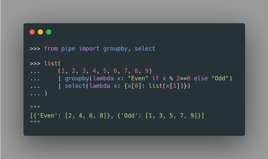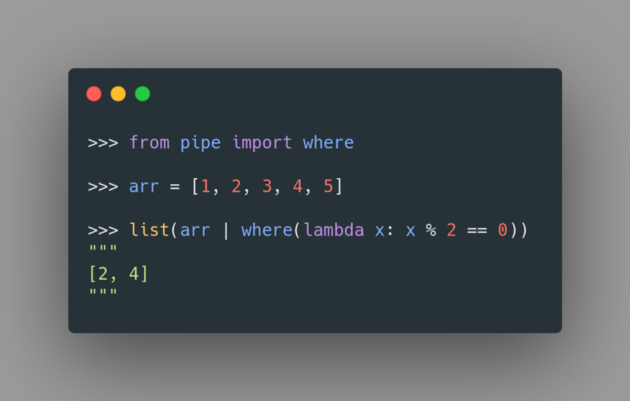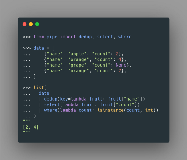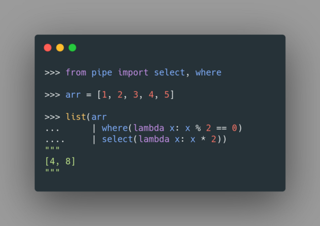 Pipe 是一個 Python 庫,可讓你在 Python 中使用管道。