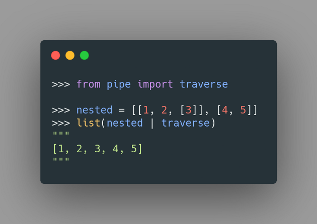 traverse 方法可用于遞歸展開可迭代對象。 你可以使用此方法將深度嵌套的列表轉換為平面列表。