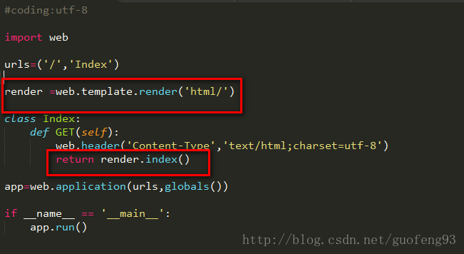 render = web.template.render('html/') #框架會去html目錄下查找全部的html文件。