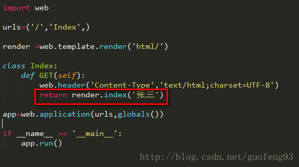 render.index(name) #index表示我創(chuàng)建的index.html,name表示該文件中的參數(shù)值是多少。{參數(shù)可以多個}