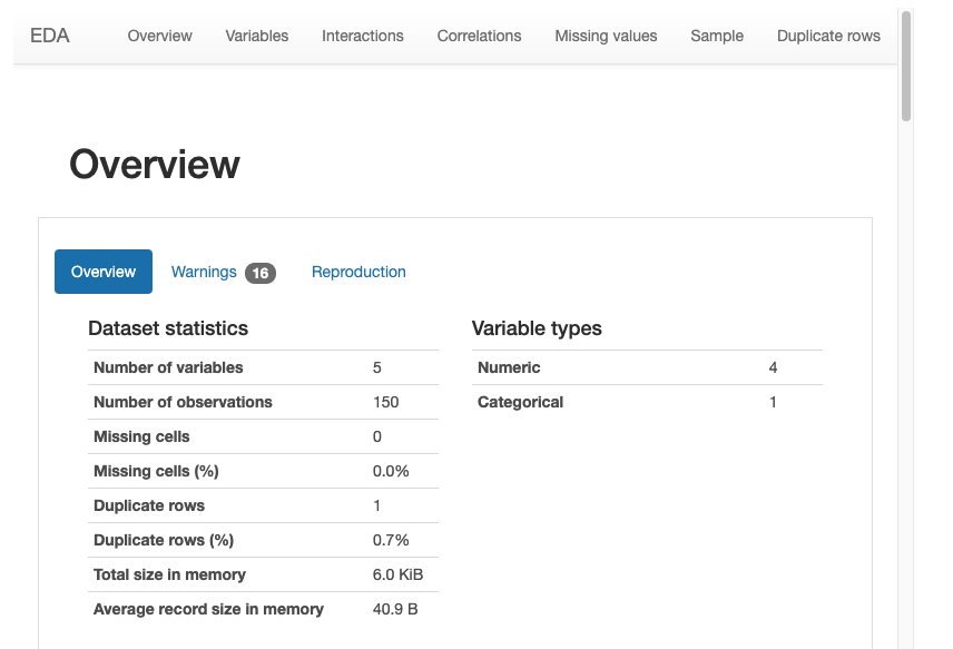 Pandas Profiling是款比較成熟的工具,可以直接傳入DataFrame即可完成分析過程,將結果展示為HTML格式,同時分析功能也比較強大。