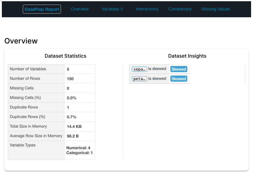 - 功能:字段類型分析、變量分布分析、相關性分析、缺失值分析、交互式分析。