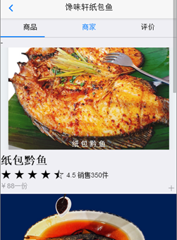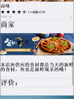 圖上的商品介紹、商家、評價原本應為區(qū)域滾動的三個部分,在將各個部分的內容對應添加上去時,全部都呈現(xiàn)在了一個頁面。而且在滾動時下方的藍色條并不能隨之滾動,但字體會變?yōu)樗{色。