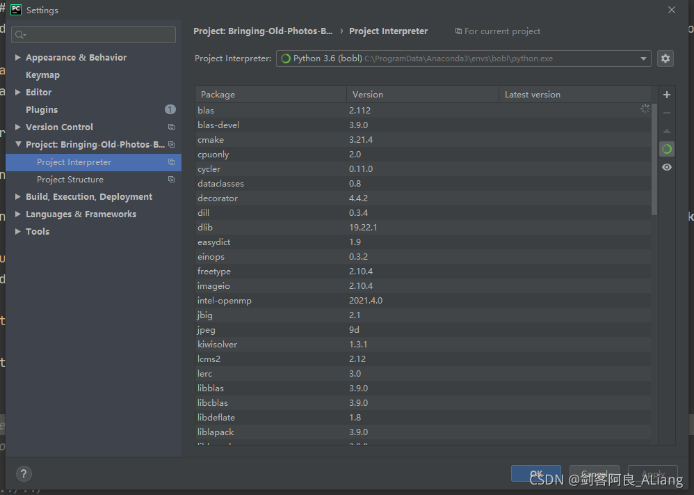 在Pycharm項目中配置interpreter,設(shè)置到conda目錄envs下bobl環(huán)境的python。