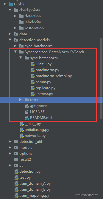 也是一樣要把sync_batchnorm拷貝到上級目錄。結(jié)構(gòu)如下: