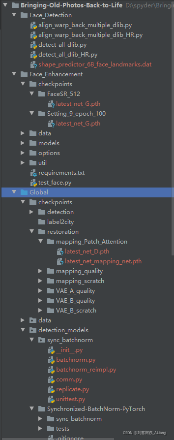 這里注意一點,需要把Synchronized-BatchNorm-PyTorch項目中的sync_batchnorm拷貝到上級目錄。完整的目錄接口參考下圖:
