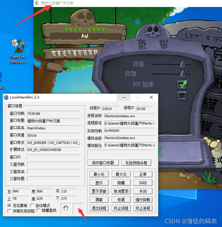 window_handle = win32gui.FindWindow(None, "植物大戰(zhàn)僵尸中文版") #Pyspy++ 窗口句柄win32gui.