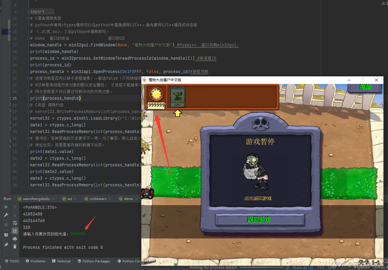 sun = input("請(qǐng)輸入你要改變的陽光值:")