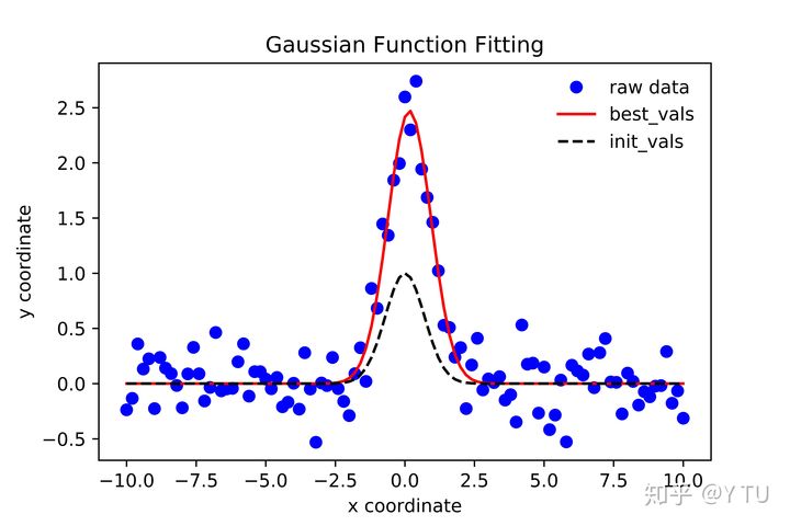 y1 = gaussian(x, *best_vals) #best_vals, '*'is used to read-out the values in the array