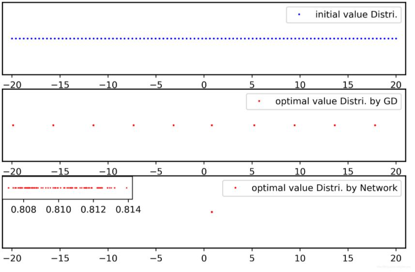 plt.plot(xopt_gd, np.zeros_like(xopt_gd), '.r', markersize=2, label='optimal value Distri. by GD')