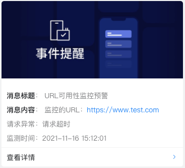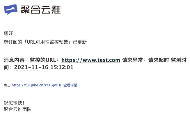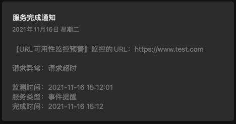如果監(jiān)測到異常結(jié)果,你在云推配置的接收終端將會收到通知,類似如下: