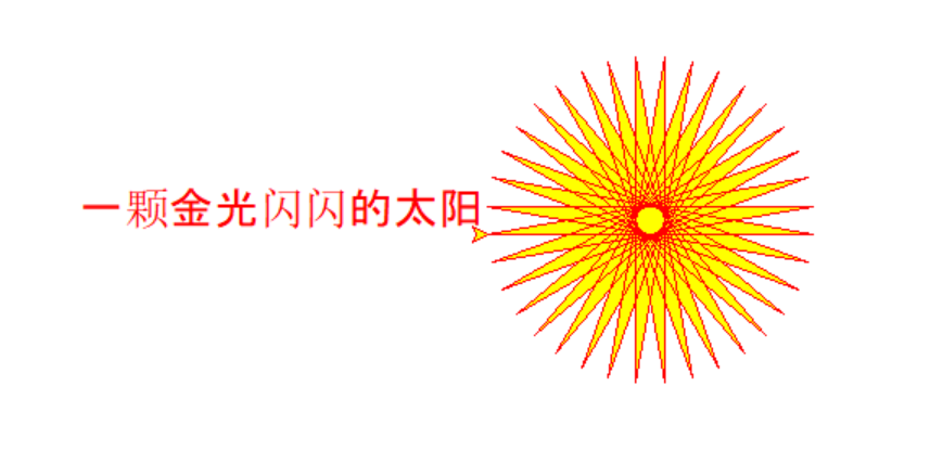 t.write("一顆金光閃閃的太陽", align = "right", font = ("Arial", 20, "normal"))