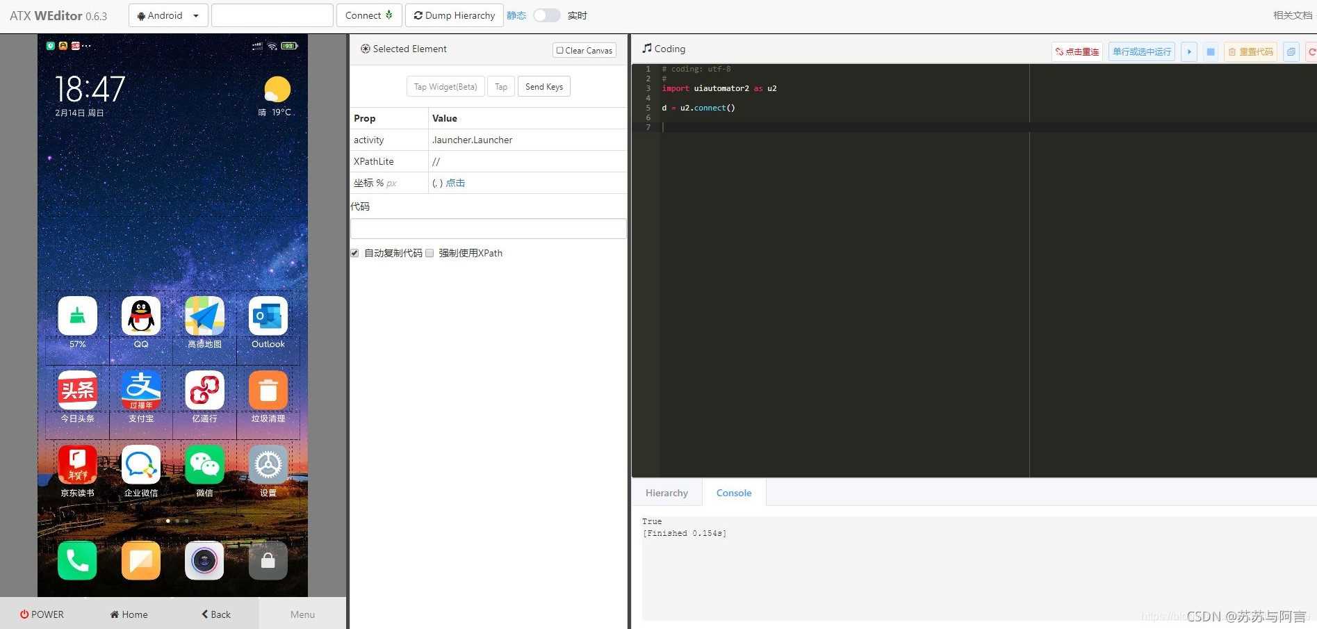 上述代碼運行成功后,基本上就可以控制手機了。uiautomator2具備較多功能,在此不再贅述,百度具有較多資料。