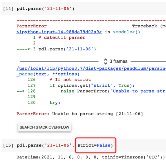 Pendulum 還集成了許多常見的日期時間擴展,例如 dateutil。 如果我們希望庫依賴于 dateutil 解析器,我們可以傳遞標志 strict=False。