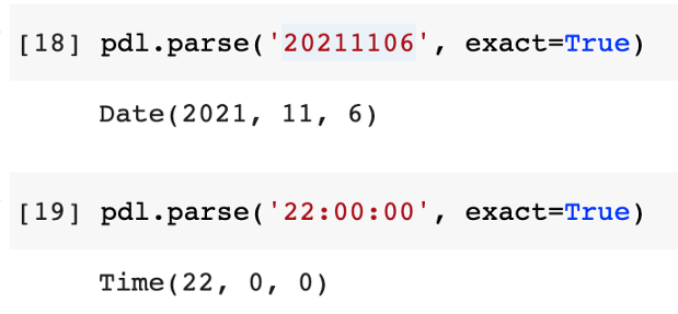 如果我們特別想要一個日期對象或一個時間對象,只需指定exact=True,這比Python datetime 模塊容易得多。