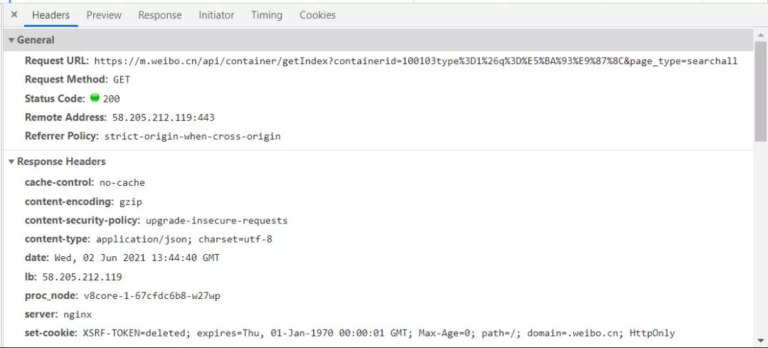 response = requests.get('https://m.weibo.cn/api/container/getIndex', headers=headers, params=params)