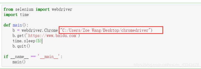#此處chromedriver改為自己下載解壓的chromedriver的路徑