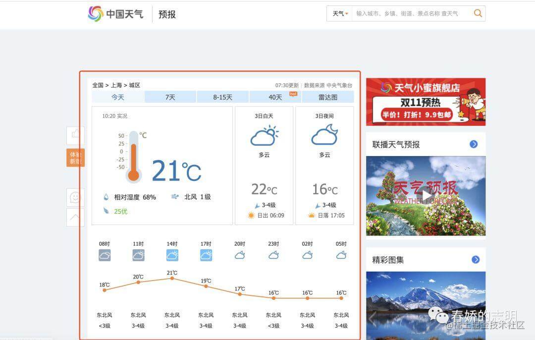 國內(nèi)天氣網(wǎng)的 api 很多,我找了一個簡單易用的天氣查詢網(wǎng)站——中國天氣