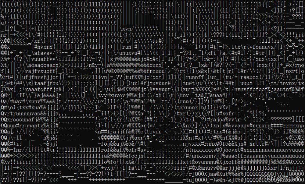 pixels = "▇圞國圖囜ⒶⒷⒸB8&WMZO0QJX@%&jfoavunxr#t/\|()1{}[]?-_+~<>i!lI;:,\"^`'. ^`'. " #用于映射的字符