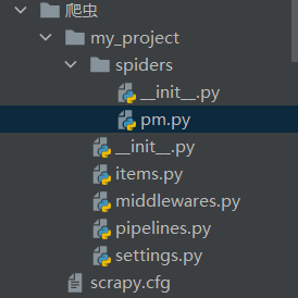 >scrapy genspider pm imspm.com Created spider 'pm' using template 'basic' in module: my_project.spiders.pm