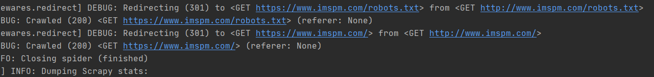 此時(shí)在運(yùn)行 scrapy 爬蟲(chóng),就會(huì)出現(xiàn)如下提示信息。