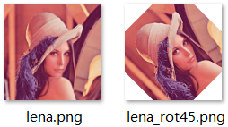lena_rot45 = cv2.imread('lena_rot45.png') # 讀取lena旋轉(zhuǎn)45°圖
