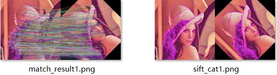 首先對原圖和旋轉(zhuǎn)圖進(jìn)行特征匹配,即圖original_lena和圖lena_rot45