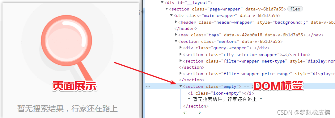 當頁碼超過最大頁數(shù)時,返回如下頁面狀態(tài),所以數(shù)據(jù)為空狀態(tài),只需要判斷 是否存在 class=empty 的 section 即可。