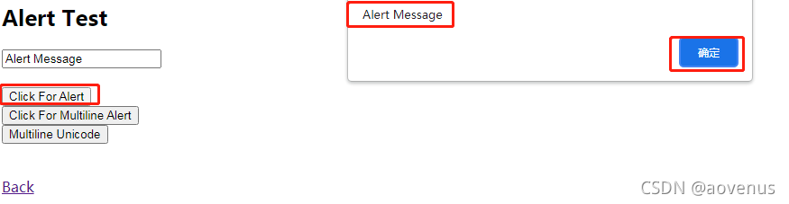 #鼠標(biāo)點(diǎn)擊頁面中“Click For Alert”按鈕