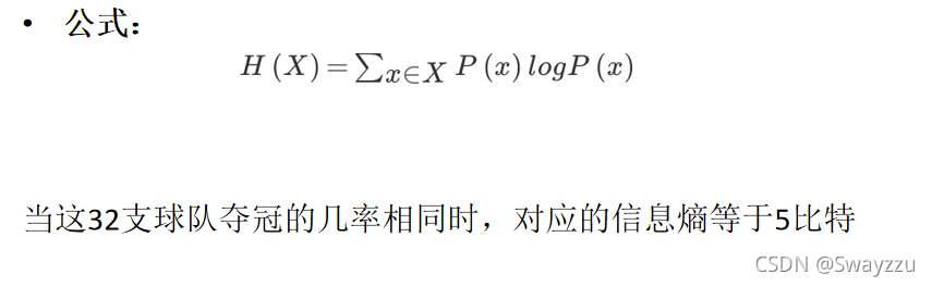 假設(shè)有32支球隊(duì),在不知道任何信息的情況下,以二分法去猜冠軍,最多猜log(2)32 = 5次。此時(shí):每個(gè)球隊(duì)的奪冠概率為1/32,那么: