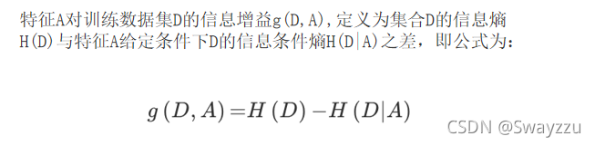 信息增益:當(dāng)?shù)弥粋€(gè)特征條件之后,減少的信息熵的大小。計(jì)算公式如下: