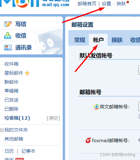 此密碼非彼密碼,這個(gè)密碼需要我們?nèi)サ竭@里獲?。篽ttps://mail.qq.com/,登錄你的郵箱。然后點(diǎn)擊位于頂部的【設(shè)置】按鈕,選擇【賬戶設(shè)置】。