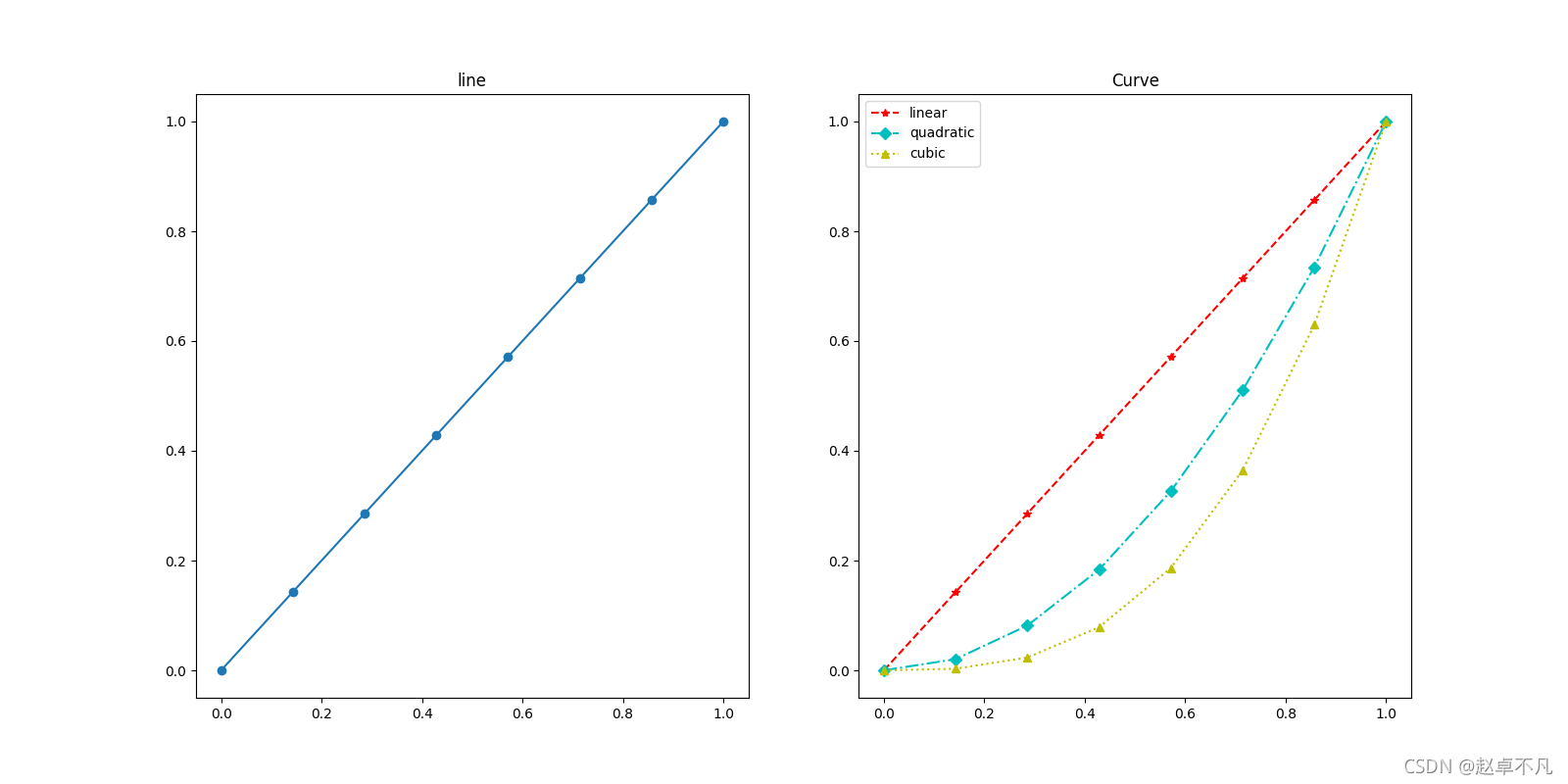 直線:左上直線圖形顯示。曲線:右上帶有樣式變化和標(biāo)記的折線預(yù)覽。