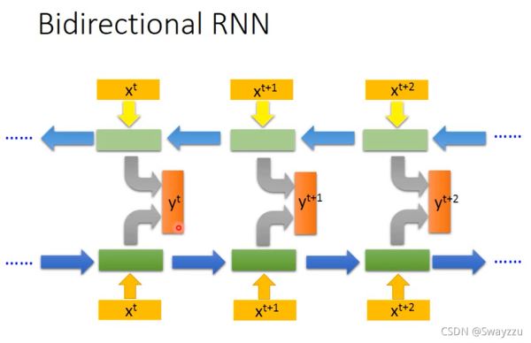 雙向RNN:從正向輸入的內(nèi)容,得到的存儲(chǔ)內(nèi)容,以及反向輸入內(nèi)容得到的存儲(chǔ)內(nèi)容,同時(shí)輸入給模型。