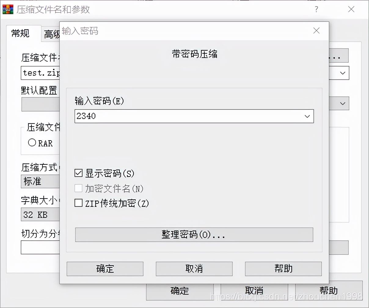 首先測試文件為test.txt(僅包含單行文本),壓縮后文件為test.zip,壓縮密碼為2340,壓縮后刪除目錄下的txt文件。。