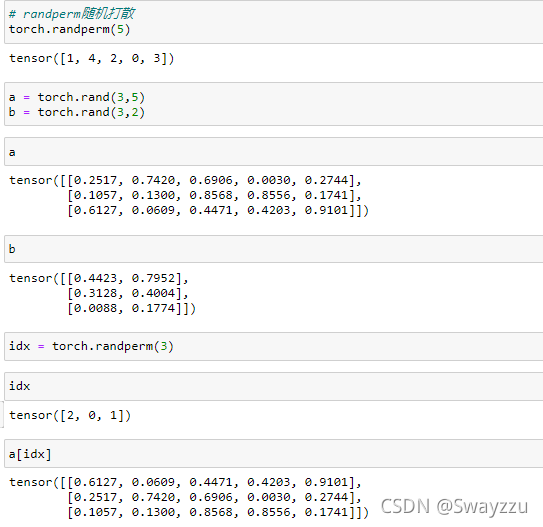 隨機(jī)打散。輸入一個(gè)數(shù)字,會(huì)自動(dòng)生成這個(gè)數(shù)字長(zhǎng)度的,從0開始的隨機(jī)排列數(shù)字,可以作為索引。當(dāng)需要對(duì)不同的數(shù)據(jù),使用相同的索引,并且打亂順序時(shí),非常好用。