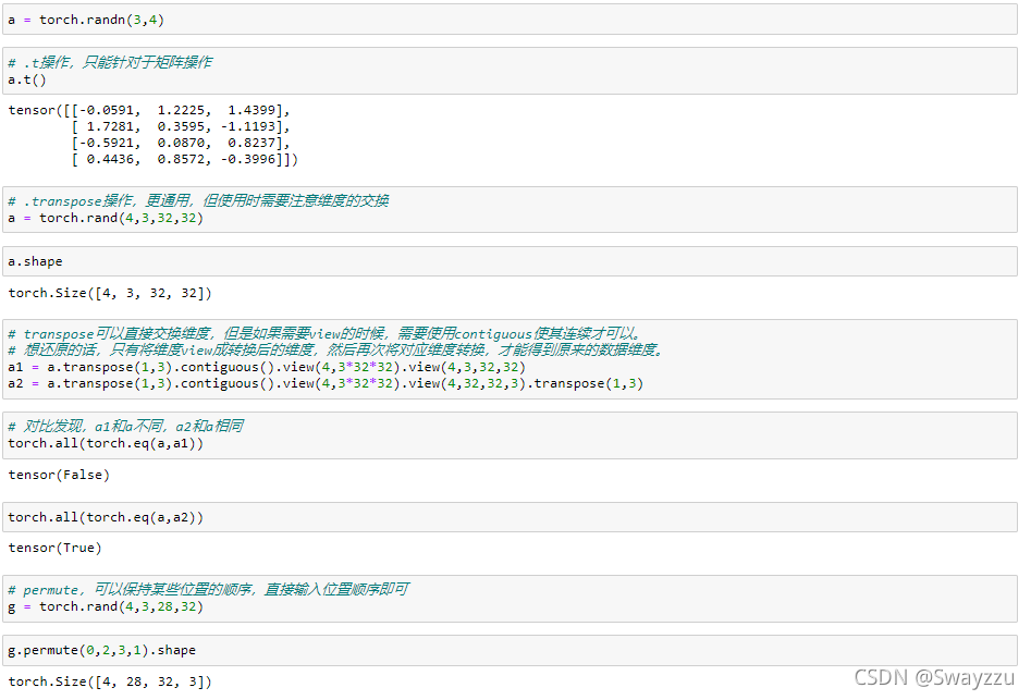 transpose:輸入需要交換的維度的位置即可。但想要還原的時(shí)候,需記得轉(zhuǎn)換后的各個(gè)位置的物理意義,根據(jù)實(shí)際意義進(jìn)行再次轉(zhuǎn)換。見下面的例子。