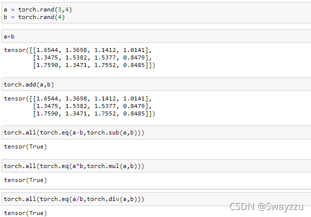 和numpy中的一致。也可以使用torch.add等方法。