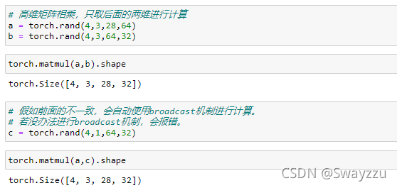如果是高維矩陣相乘,計算的其實就是最后的兩個維度的矩陣乘法。