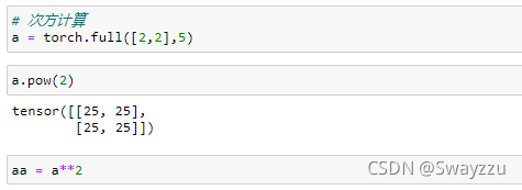 和numpy中一致,可以使用**來計算任意次方。此外.pow()也可以計算。