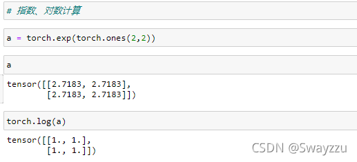 指數(shù)和對數(shù)計算也基本一致,log默認是以e為底的。