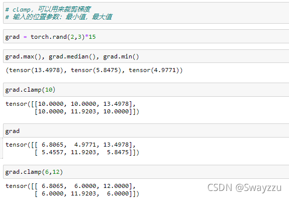 通常用于當出現(xiàn)梯度過大等情況時,對梯度進行裁剪。通過輸入最大最小值,目標中超出最大值的按最大值來;低于最小值的按最小值來。