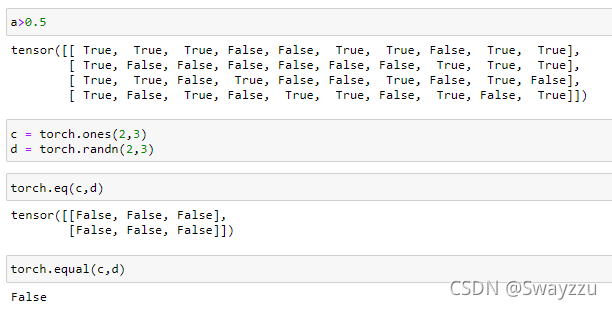和Numpy中的一致。如果使用torch.eq方法,返回每個對應(yīng)位置的結(jié)果;如果使用torch.equal方法,返回的是整體對比的結(jié)果。