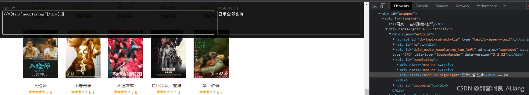 主要爬取頁面為:https://movie.douban.com/cinema/nowplaying/nanjing/