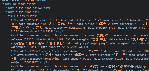 分析一下,是不是可以通過nowplaying的div,作為根節(jié)點(diǎn),然后獲取下面class為list-item的節(jié)點(diǎn),里面的屬性就是我們要的內(nèi)容。