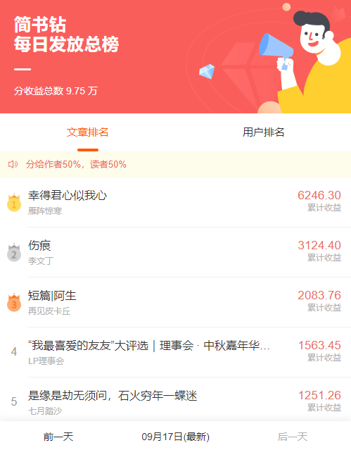 我們這次使用的數(shù)據(jù)是簡書文章收益排行榜,日期范圍為 2020 年 6 月 20 日至 2021 年 9 月 18 日。