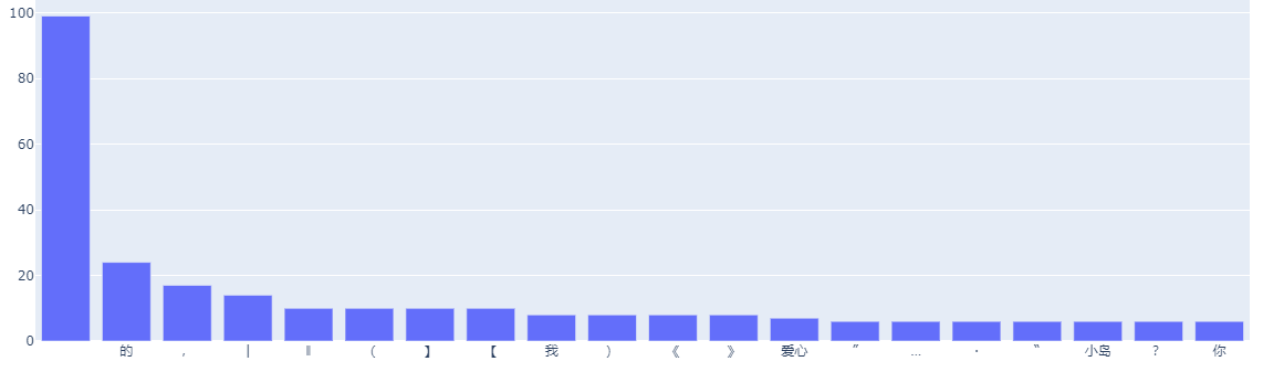 可以看到,空格和一些標點符號,包括”的“、”我“之類無意義詞匯出現(xiàn)頻率很高,我們需要將它們剔除出去。